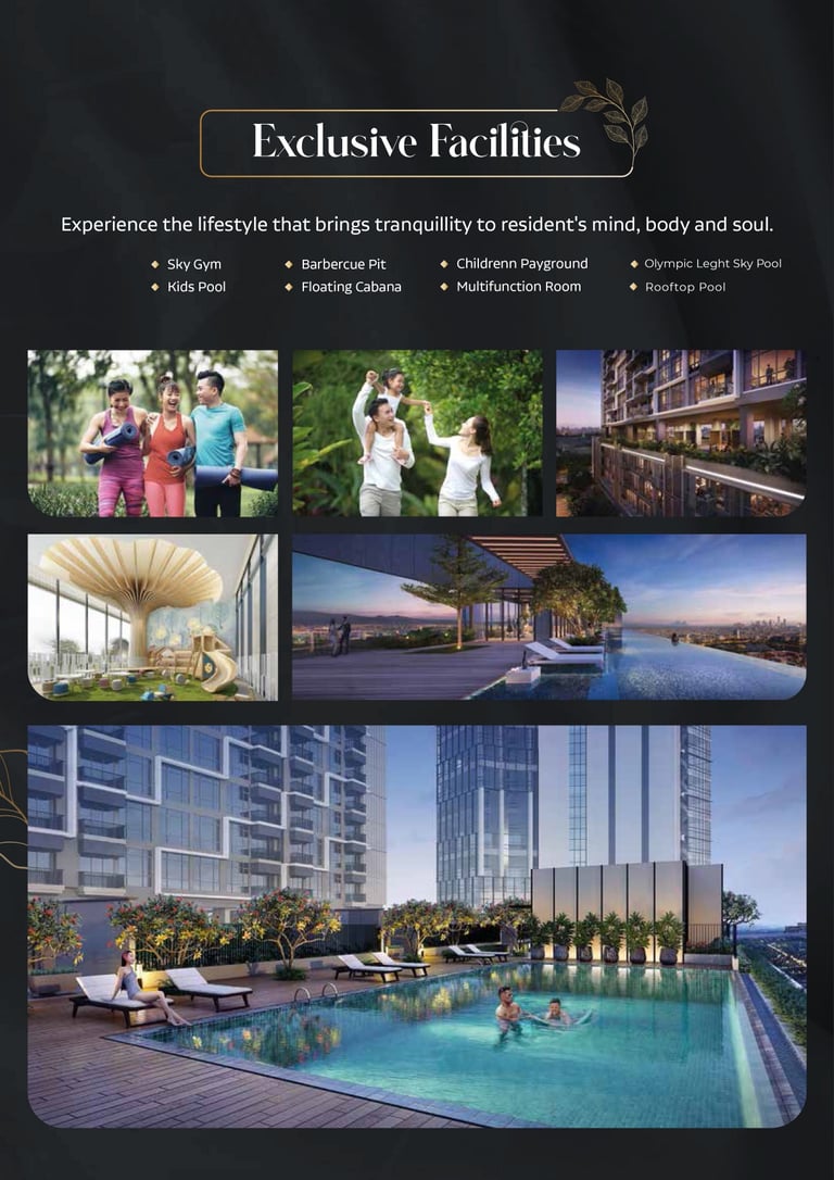 💫 Prime Facilities: 7 thematic Garden, Olympic lenght sky pool & Sky Gym, Floating Cabana, Children Playground, Multifunction Room, BBQ Pit.